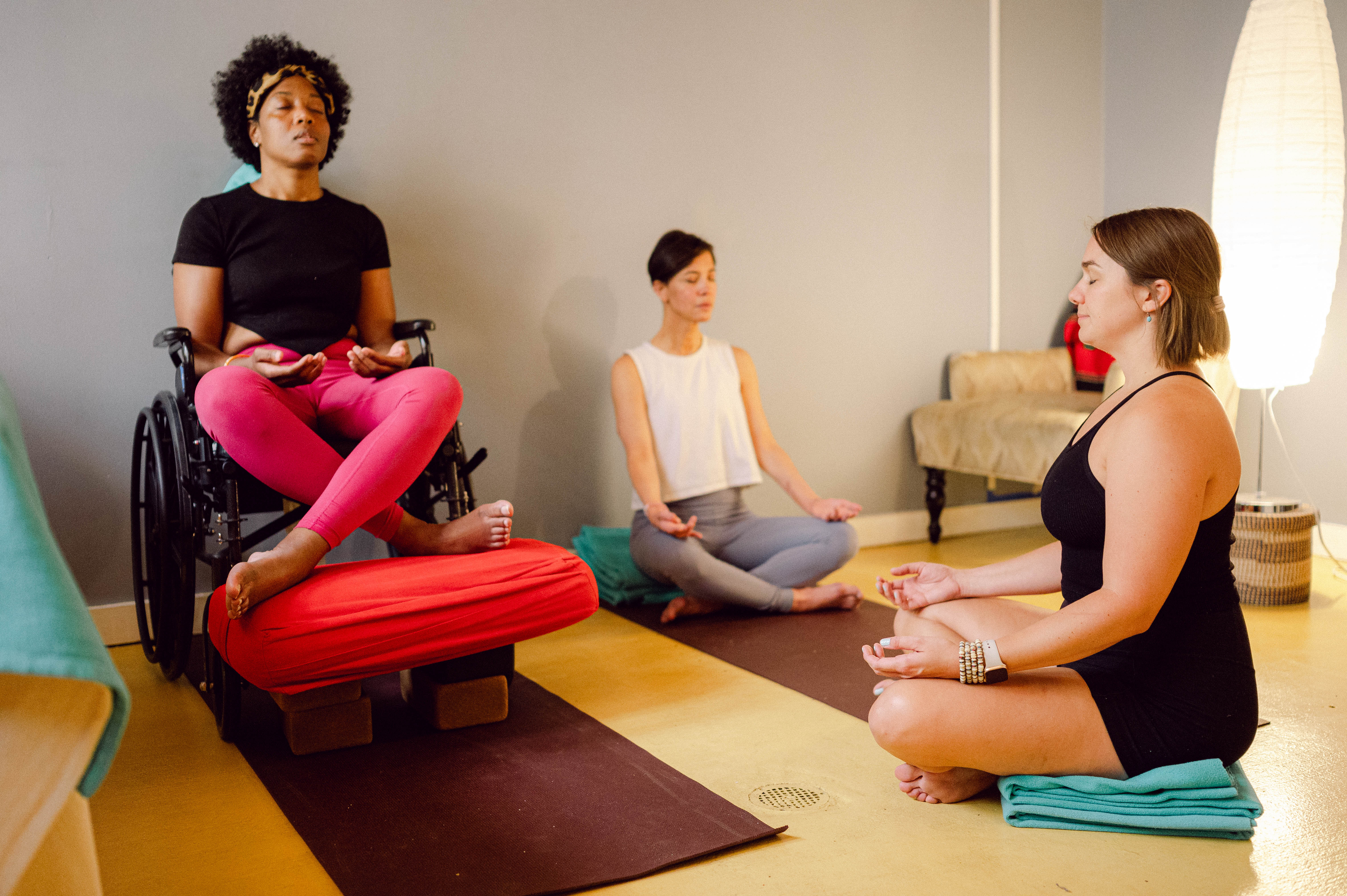 My mission is to make yoga therapeutic, inclusive, and a lifelong tool for healing. I'm happy that you're here and that we share a mission of inclusivity.